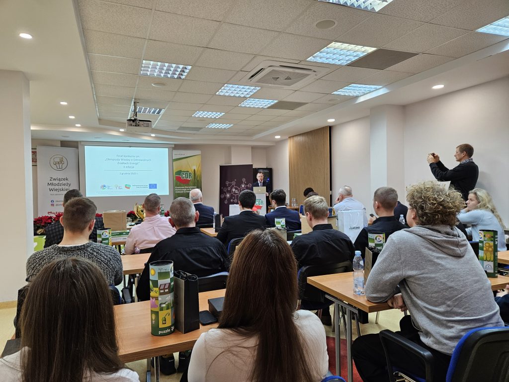 Pierwszym z nich była 2 edycja Olimpiady Wiedzy na temat Odnawialnych Źródeł Energii, zorganizowana przez Związek Młodzieży Wiejskiej, w której KOWR uczestniczył jako Partner Honorowy. Wydarzenie miało na celu propagowanie wiedzy o nowoczesnych technologiach energetycznych oraz zachęcanie młodych ludzi do podejmowania inicjatyw na rzecz zielonej transformacji w rolnictwie. Uczestnicy olimpiady rywalizowali w testach wiedzy z zakresu energetyki odnawialnej w 2 etapach: regionalnym i krajowym. W dniach 2-3 grudnia 2025 r. na terenie Centrum Doradztwa Rolniczego w Brwinowie – Oddział w Radomiu odbył się finał centralny wiedzowych zmagań oraz wręczenie nagród. Uczestnicy finału oraz laureaci Konkursu otrzymali upominki sygnowane „Energia z rolnicwa” Agro OZE – puzzle oraz gry planszowe.